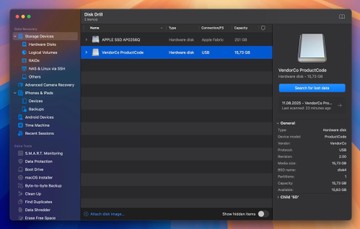 - Connect your SD card to your Mac, either through the built-in slot (if you have one) or with a good USB card reader. Make sure the connection is solid. What matters here is whether your Mac detects the card. You can check in Disk Utility. If you see your SD card listed there with the correct size, even if it doesn’t appear in Finder, you can scan it.