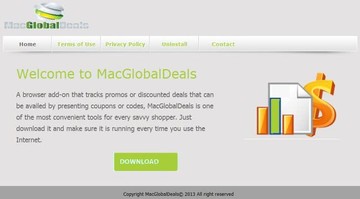 Deployment of adware campaigns targeting Macs has grown into a game changer in the industry’s overall security line-up. The once distinct line between Windows and Mac users in terms of the attack surface has obviously grown blurred as malware is moving further into the cross-platform direction. The app called MacGlobalDeals, though, is strictly Mac oriented because its installer is a DMG file. As it generally tends to be with adware for both operating systems targeted, the official marketing part is pretty neat: the website of this app emphasizes the convenience of use and multiple benefits it provides, namely the tracking and displaying of promos and discounted deals. The basic idea, which is not that bad by essence, is regretfully messed up by the fashion in which it is implemented. If you are a savvy online shopper, MacGlobalDeals is definitely not on your must-have apps list.